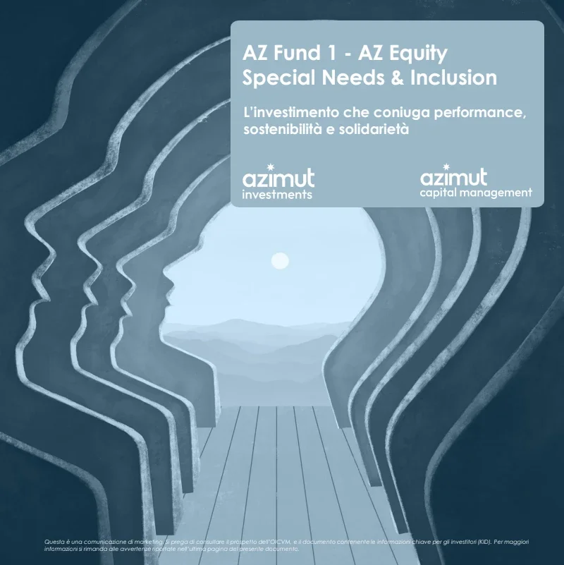 Il FONDO AZ EQUITY SPECIAL NEEDS & INCLUSION , è il primo fondo che investe in aziende che promuovono il miglioramento delle condizioni di vita e del benessere delle persone con disabilità con un focus particolare sull'inclusione lavorativa.La finalità solidale di tale comparto ,è rappresentata dalla possibilità di devolvere tutto o in parte i proventi , ad Enti del Terzo Settore Italiani che operano sul territorio nazionale . Gli Enti ad oggi selezionati sono : Dynamo Camp Ets Fondazione Lega del Filo D'oro Ets e Fondazione e Ente Filantropico Telethon Ets.